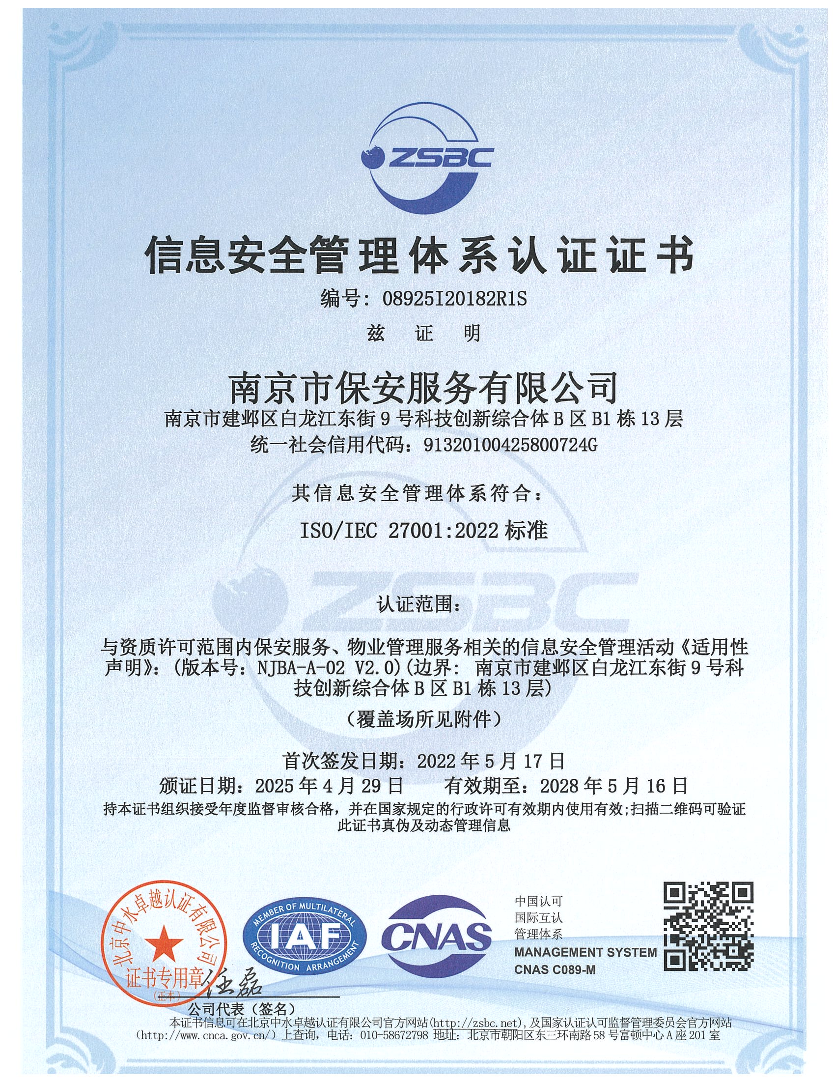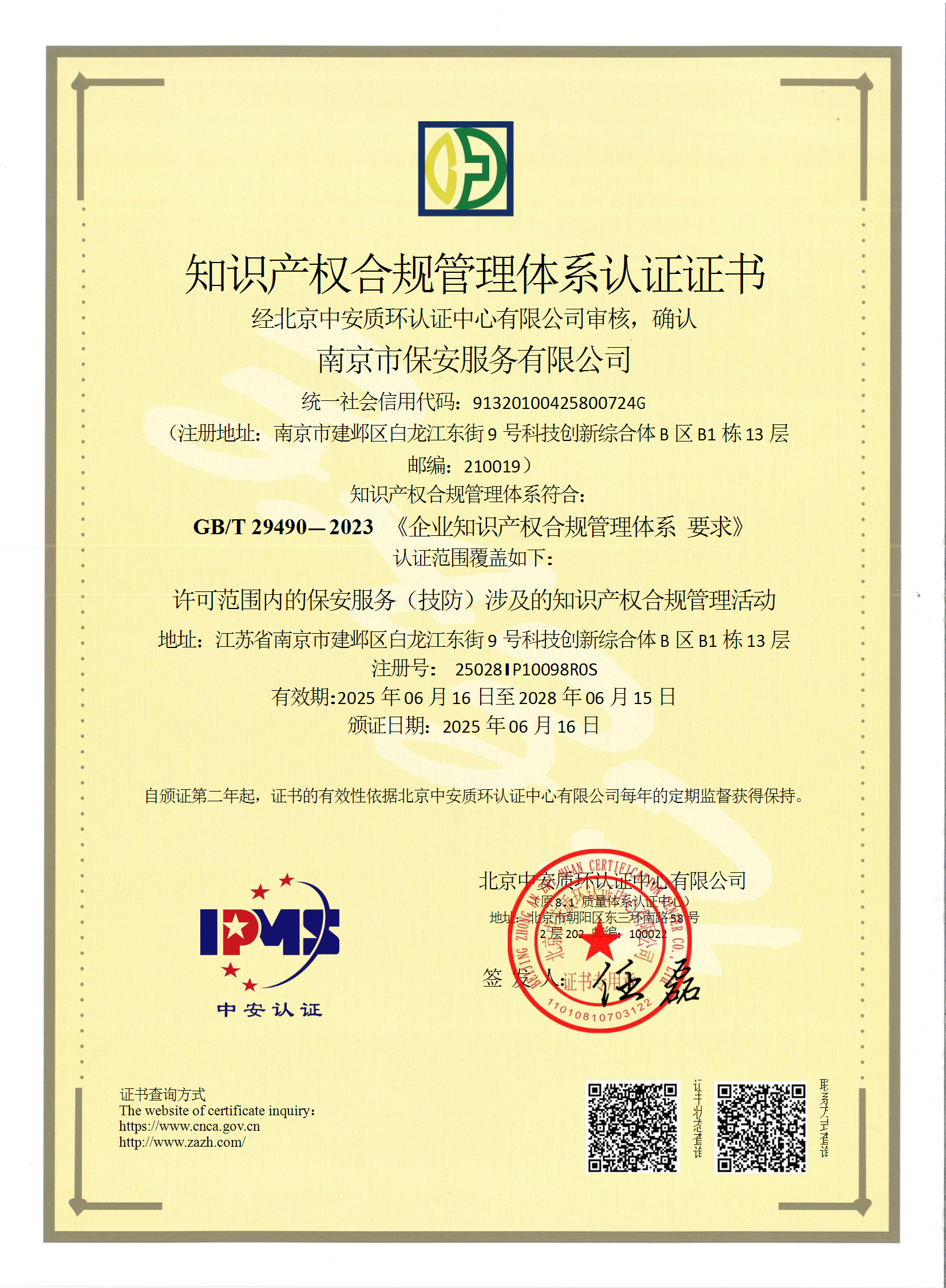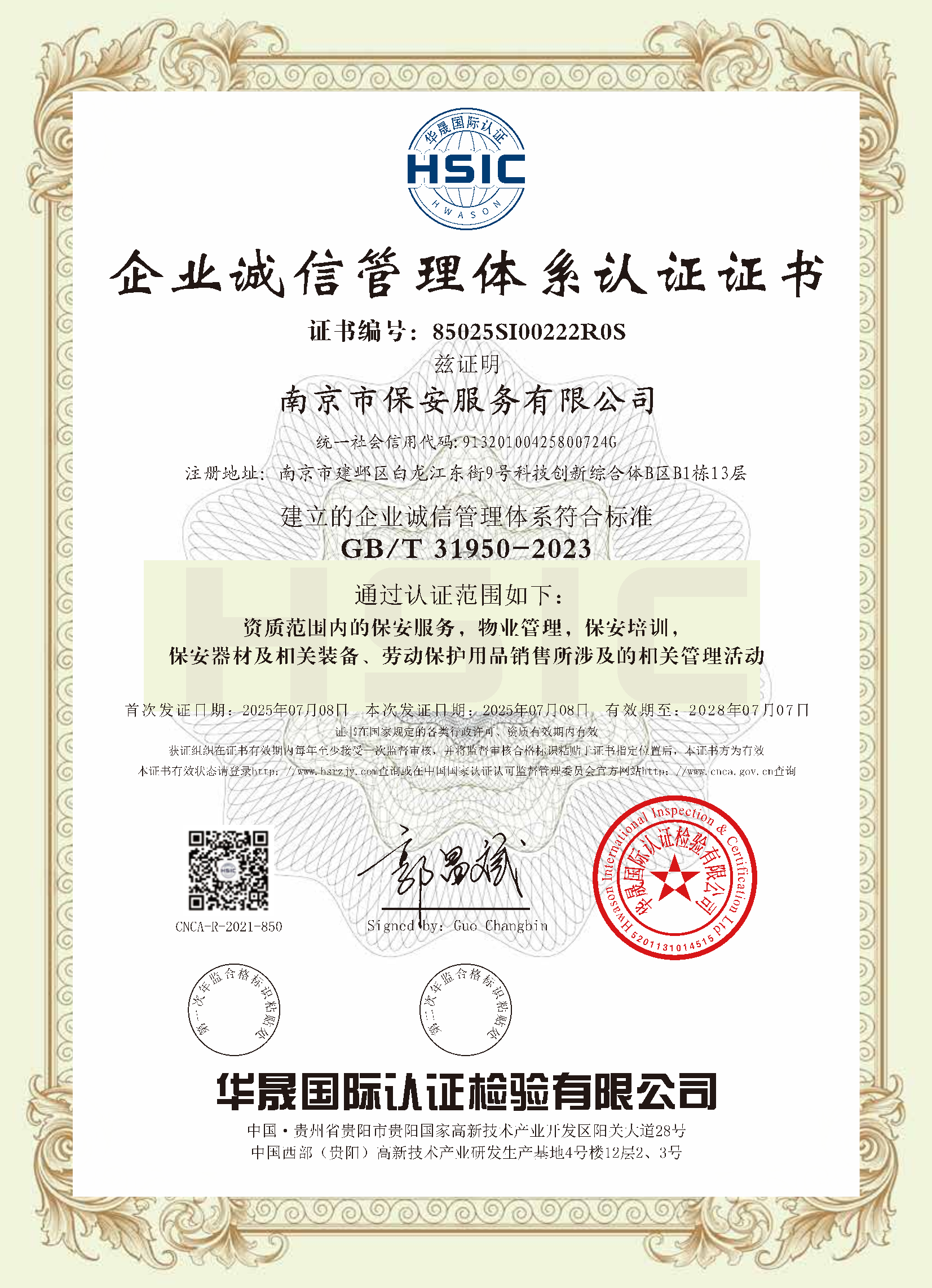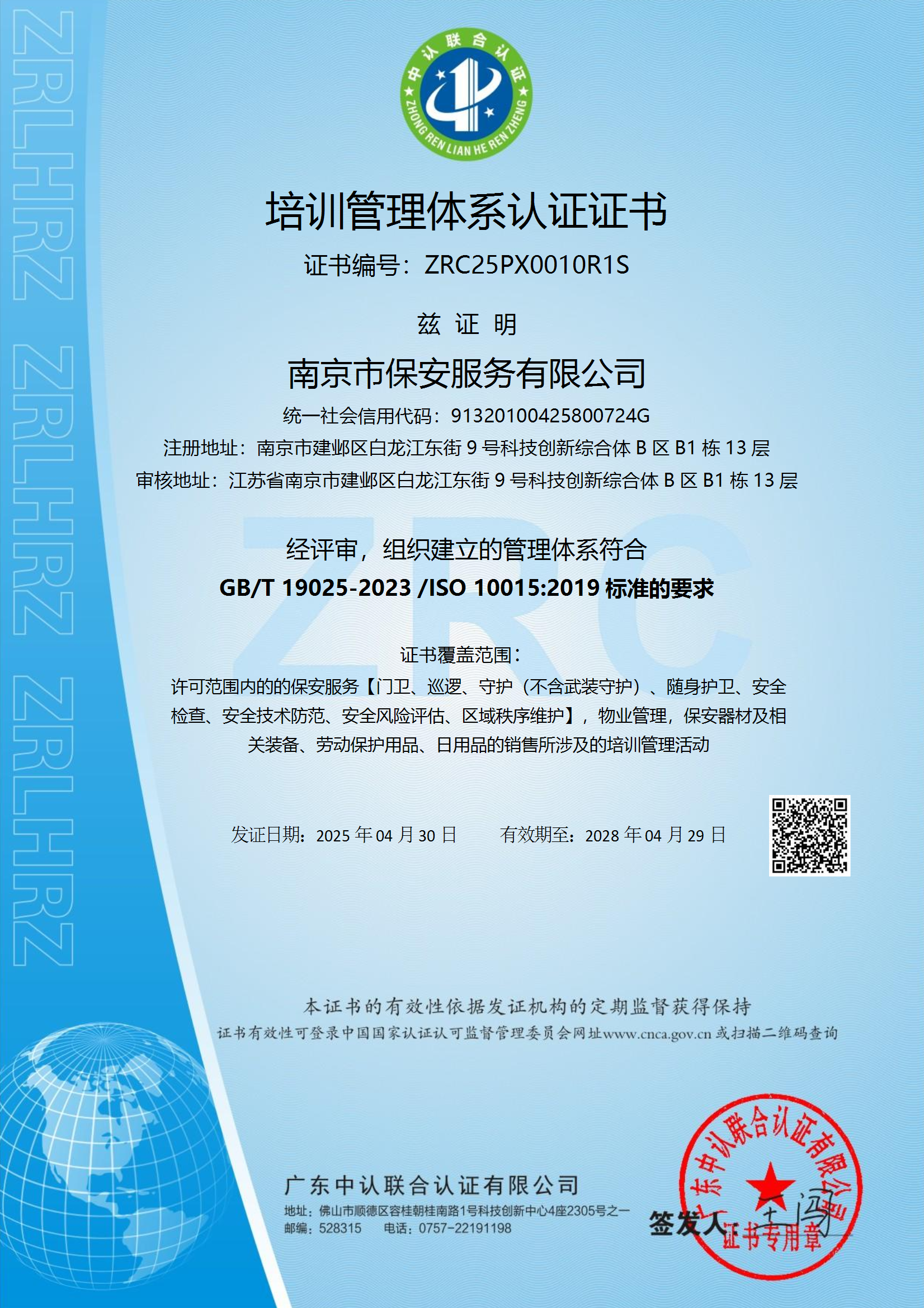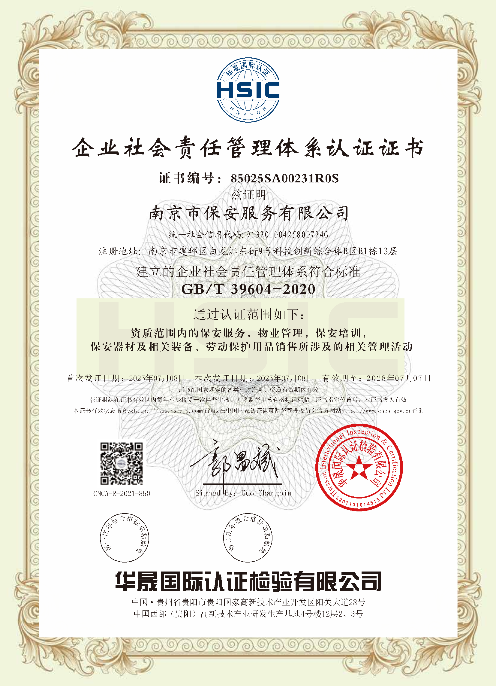 祝賀:南京市保安服務(wù)總公司通過企業(yè)誠信管理體系認(rèn)證和企業(yè)社會責(zé)任管理體系認(rèn)證